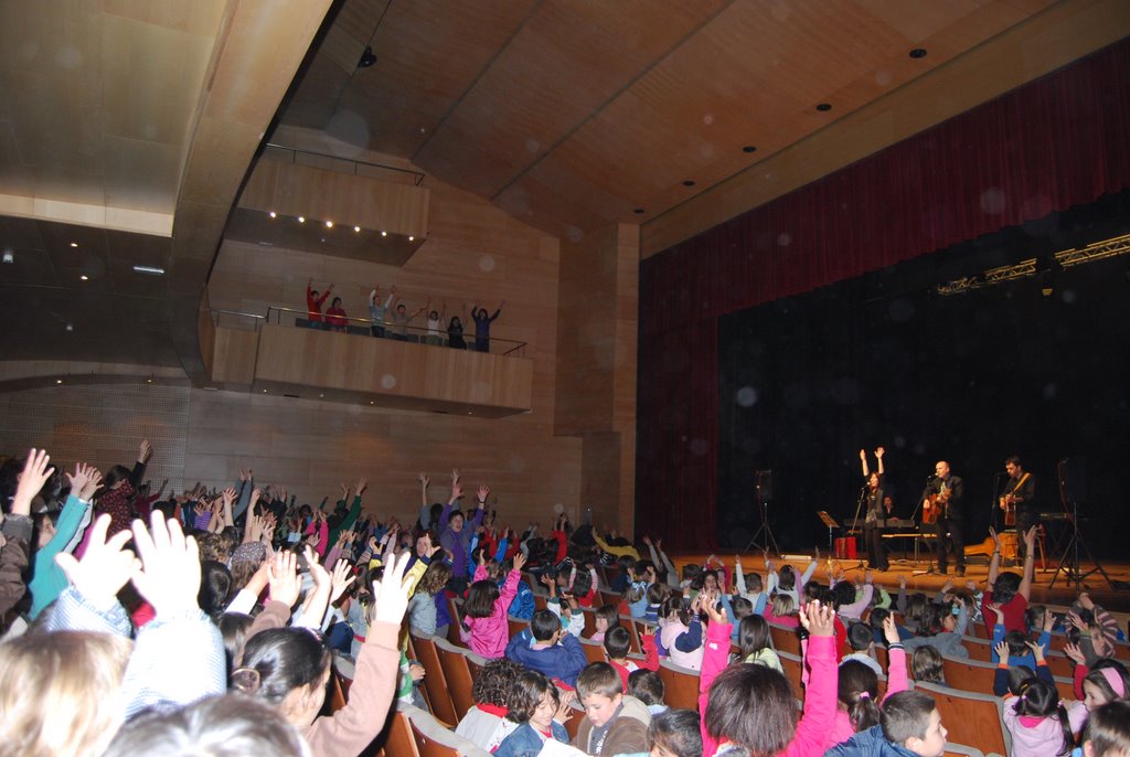 O venres no Auditorio participamos todo o colexio do espectáculo musical "Contos en cantos". Puidemos comprobar in situ que en vivo a voz de Almudena Janeiro segue sendo tan doce como no CD. E, como era de esperar, o éxito rotundo foi para "Cocorico" e "Chocolata".